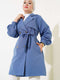 معطف ترنش قصير بأكمام منتفخة وحزام، نيلي
