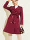 معطف ترنش بكتف واحد وصدر مزدوج، لون عنابي
