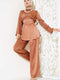 طقم ساتان مزدوج مع تفاصيل ثنيات في الأمام، أسمر ضارب للصفرة