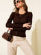 بدلة جسم محبوكة مضلعة مفتوحة التصميم بلون القهوة