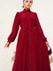 فستان من قماش الحبل مع حزام وأزرار، لون عنابي
