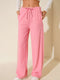بنطال ذو خيطين مع حزام خصر مطاطي، وردي