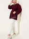 سترة لويزا واسعة الأكمام مع حزام برباط، لون عنابي