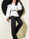 سترة مخططة الكتف مع حزام باللون الأبيض
