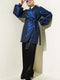 جاكيت من التفتا اللامع برباط جانبي أزرق داكن