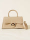 حقيبة جلدية لامعة بقفل ذهبي، بيج