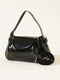 حقيبة جلدية لامعة سوداء اللون مزودة بزر كبس جانبي