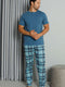 طقم بيجامة بأكمام قصيرة وأزرار مطبوعة منقوش - نيلي