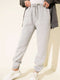 بنطال رياضي مطاطي بثلاثة خيوط، لون رمادي فاتح