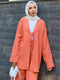 طقم كيمونو مكون من قطعتين برباط أمامي وتفاصيل لون السلمون