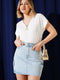 بلوزة بأكمام قصيرة وسحاب وفتحة رقبة على شكل حرف V بلون بيج فاتح