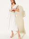 فستان بيج بدون أكمام برباط على الخصر وفتحة رقبة على شكل حرف V