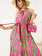 فستان بدون أكمام بنمط حمار وحشي مع رباط للرقبة باللون الفوشيا
