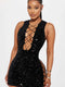 قميص نوم خيالي أسود من الحبل المزين بالترتر