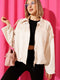 جاكيت من جلد الغزال بسحاب وياقة قميص مزين بالأحجار