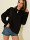 بلوزة تينسل بأكمام طويلة وياقة على شكل حرف V باللون الأسود