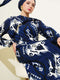 فستان منقوش بحزام أزرق داكن