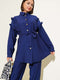 طقم من قطعتين بياقة مكشكشة وأزرار ذهبية، لون أزرق داكن