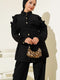 طقم من قطعتين بياقة مكشكشة وأزرار ذهبية، أسود