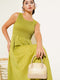 فستان بدون أكمام متعدد الطبقات باللون الأخضر الزيتوني
