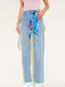 بنطلون جينز بالازو أزرق اللون بحافة مزينة بشرابات