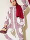 طقم من قطعتين فضفاض بنقوش باللون العنابي.