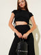 طقم قطعتين من قماش الوافل القصير مع ثنيات جانبية، أسود