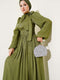 فستان سهرة كاكي بحزام ورقبة ذاتية