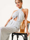 جمبسوت لامع منخفض القطع عند الصدر والظهر باللون الرمادي