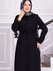 بدلة حجاب سوداء مع بنطلون مربوط عند الخصر