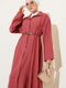 فستان أساسي بحزام بأزرار، لون وردي باهت