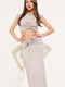 طقم تنورة قصيرة مجمعة ومفصلة من قطعتين باللون البيج