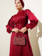 فستان ساتان أساسي مع حزام مجمع - بورجوندي