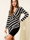 فستان محبوك بياقة على شكل حرف V مخطط بشكل متقاطع، لون بيج فاتح