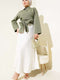 قميص قصير بأزرار متقاطعة باللون الكاكي