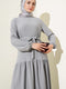 فستان رمادي من الكريب متعدد الطبقات مع حزام