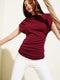 بلوزة مجمعة بفتحة رقبة على شكل قارب بلون عنابي