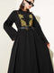 فستان أسود واسع مطرز من الأمام
