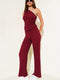 طقم من قطعتين بكتف واحد باللون العنابي