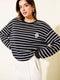 سويت شيرت أزرق داكن مخطط أفقيًا بتفاصيل مطرزة