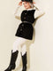 صدرية سوداء بأزرار وحزام ذهبيين، بتصميم ريشي