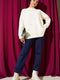 كنزة صوفية بلحية مزينة بتفاصيل حجرية، لون بيج فاتح