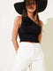 | Name | بلوزة ساندي سوداء بكتف واحد مع إكسسوار وردي |