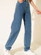 بنطال جينز واسع الساقين مع مشبك حزام، أزرق