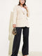 سترة بليزر بزر واحد مع جيوب قلابة باللون البيج