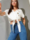 قميص قصير مطرز بالزهور، لون بيج فاتح
