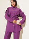 طقم من قطعتين بياقة مكشكشة وأزرار ذهبية باللون الأرجواني