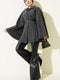 بونشو من الكشمير بلون رمادي دخاني، بياقة قميص رفيعة وحزام.