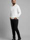 كنزة رجالية محبوكة مخططة عمودياً بياقة بولو، لون بيج فاتح