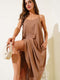 فستان ميدي شيفون أساسي بحمالات باللون البني